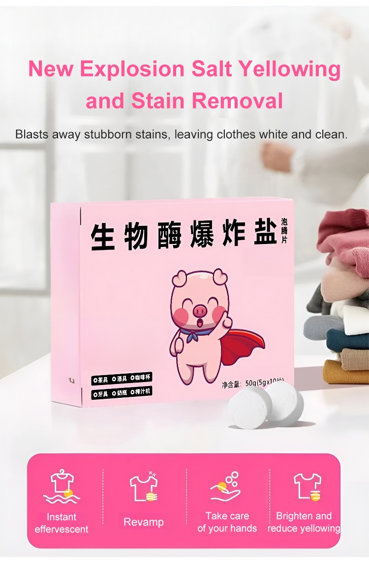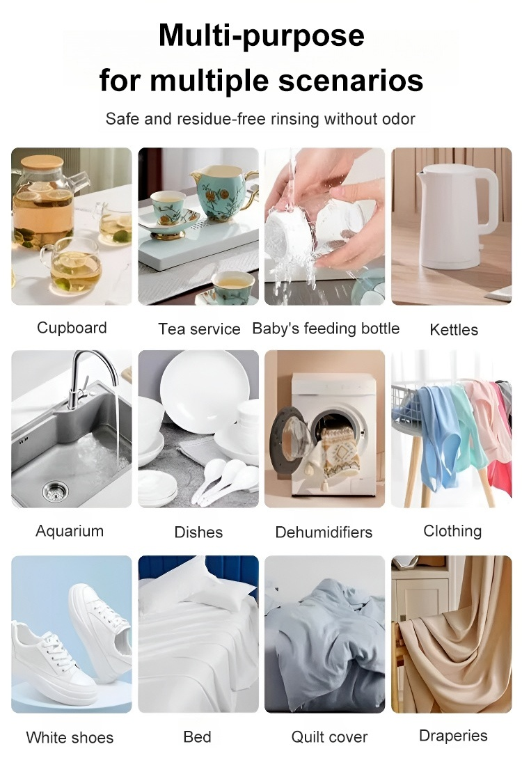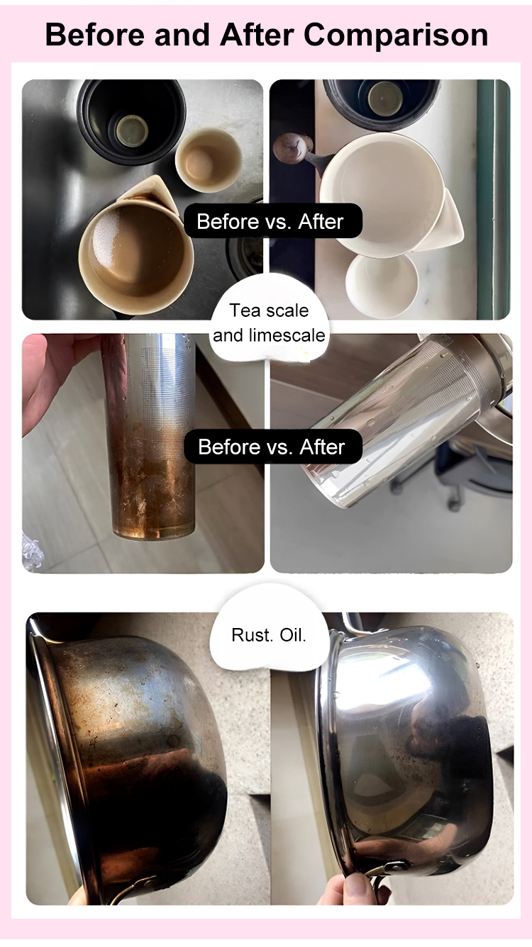 With just a gentle rub, it removes ten years' worth of grime in 5 seconds. 💦 It boasts a 99.9% antibacterial rate and contains bioactive oxygenase, capable of dissolving 100 types of stains. 🦠 Safe and gentle on hands.